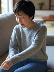 関節がこわばったり、動かしにくさを感じたりする。